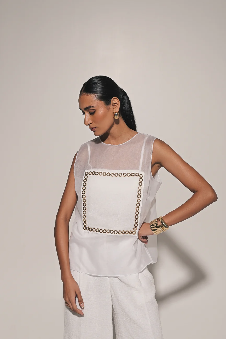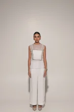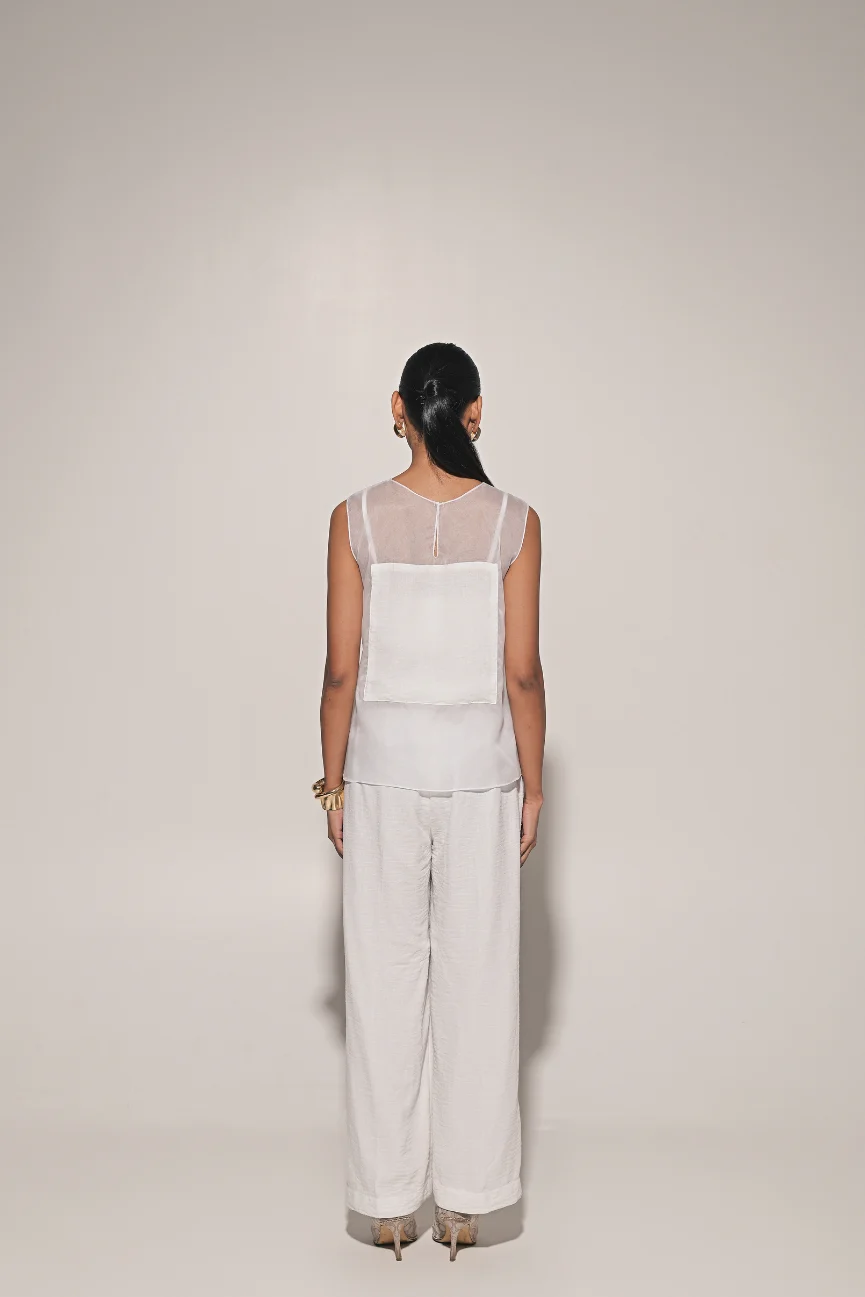 White organza box design top with bralette and pants