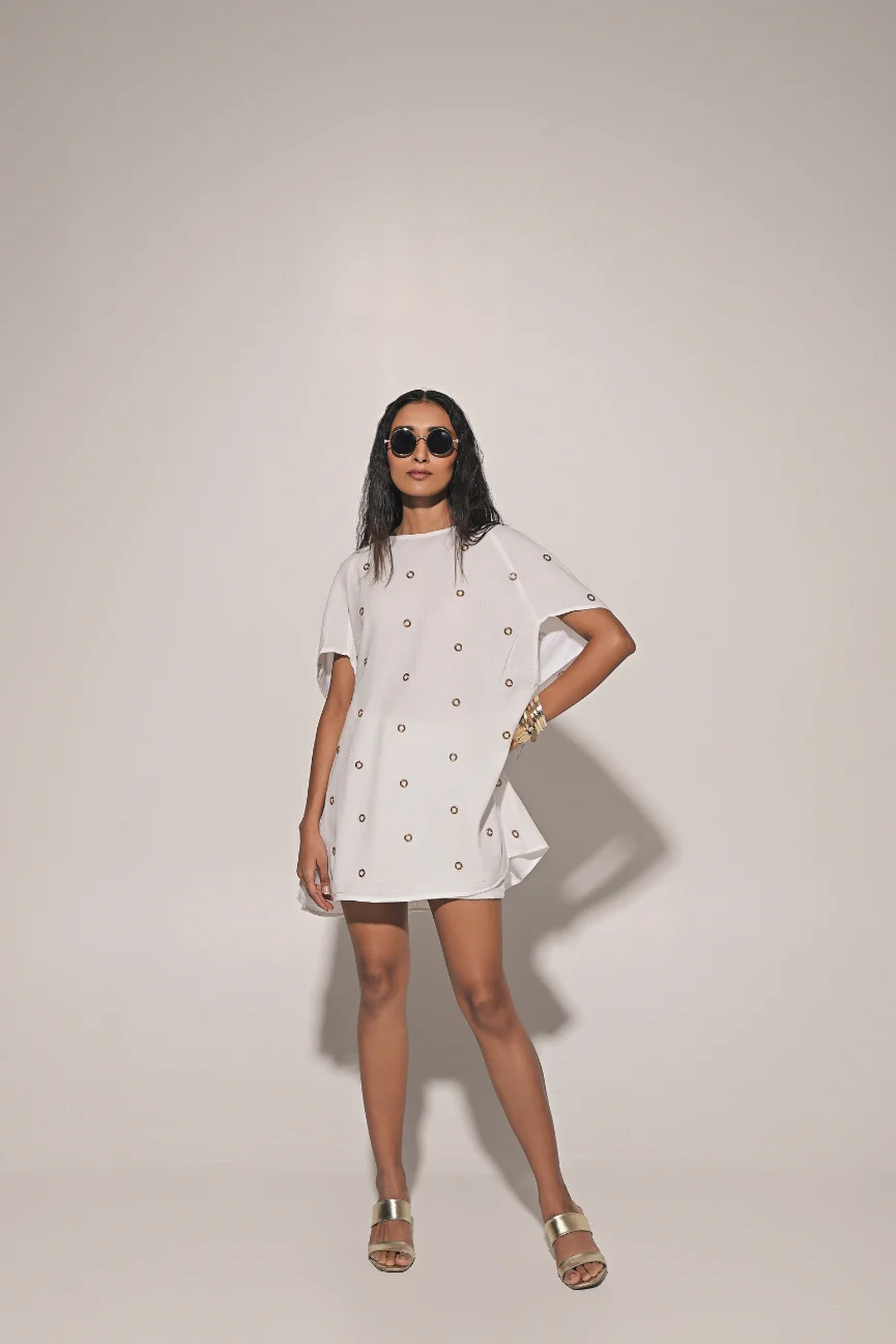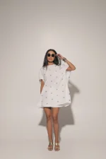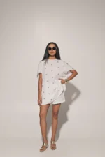 White metal embedded oversized top with shorts